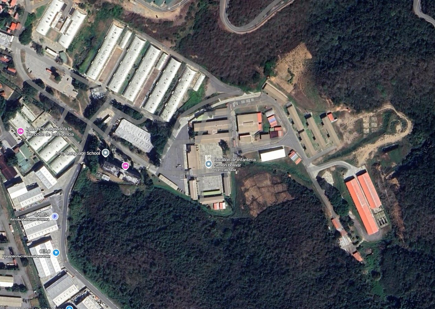 Супутникові знімки місця, де за данними ЗМІ було захоплено Мадуро 10°28'50.2"N 66°54'13.0"W